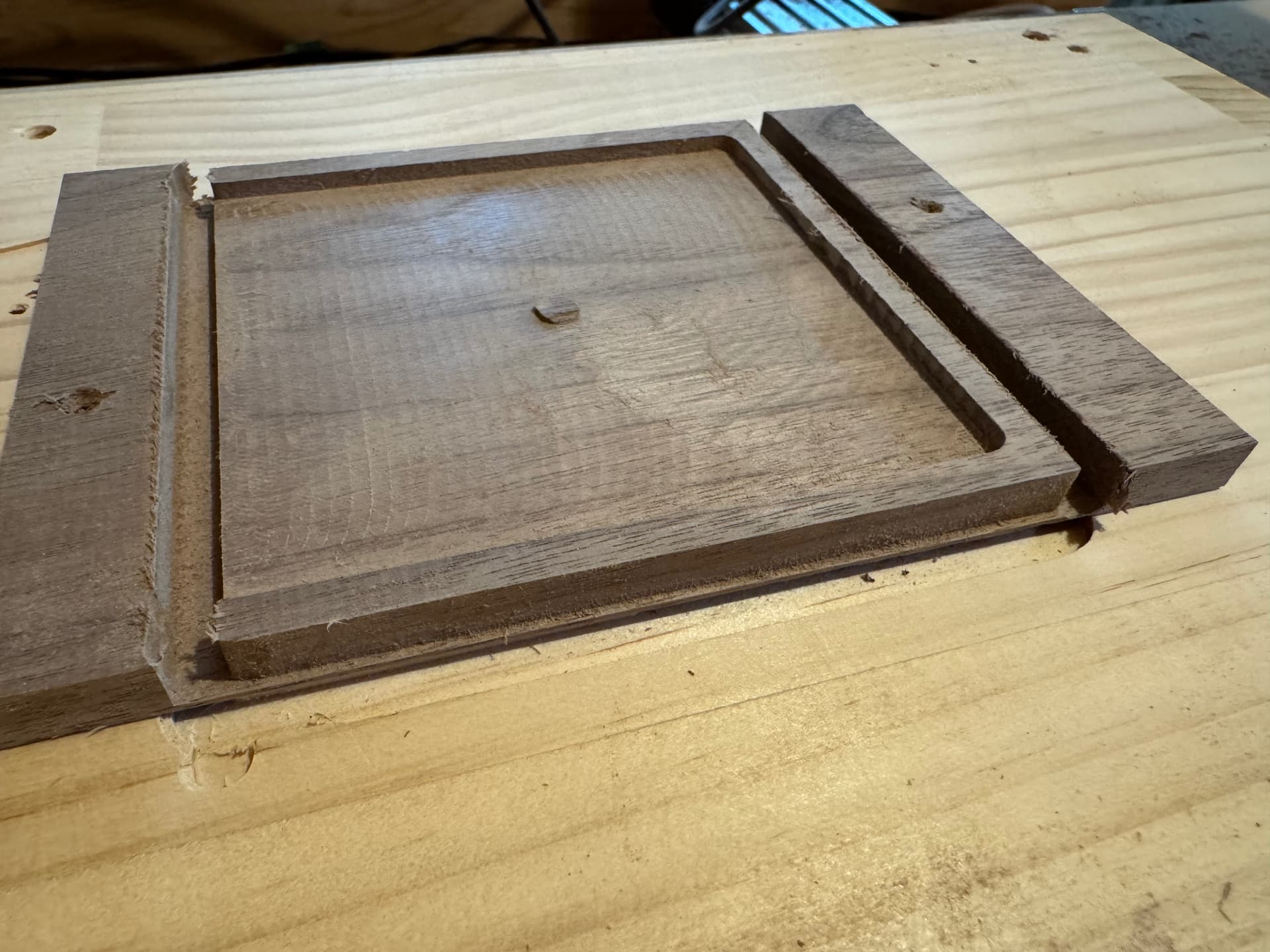 画像はZ軸の加工原点を1ミリ上げて加工した画像ですが、加工面全体が上がってしまうため、落とし込み部分も+1ミリ上がった状態です。