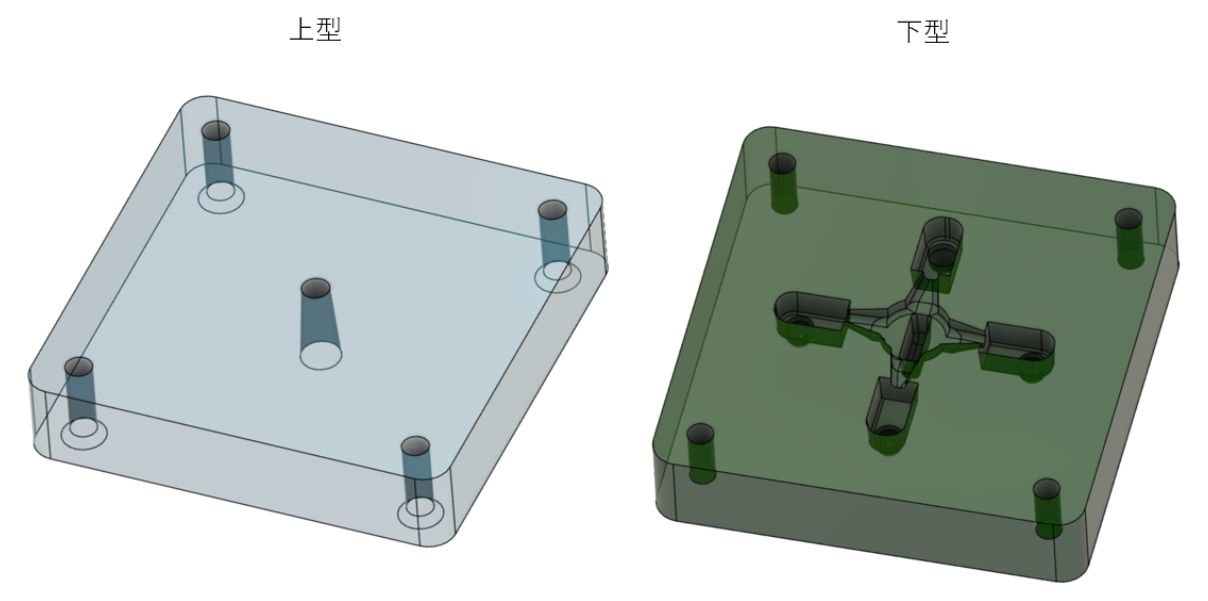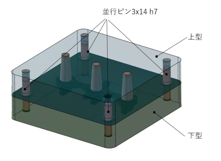 上型、下型のブロックは、TAIYAKIセットのモールドベーススペースに合わせてあります。